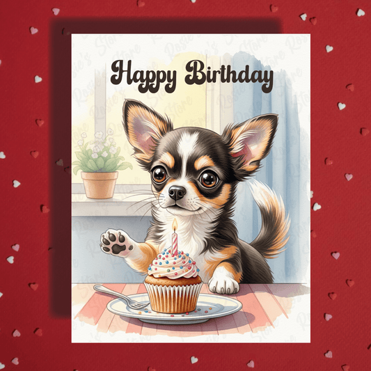 Birthday Greeting Card, Chihuahua (Black, Brown & White) Dog Pet Lover: Happy Birthday