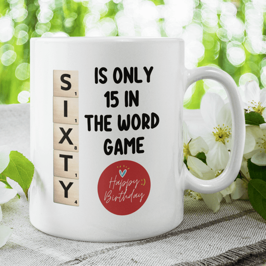 Birthday Gift, Custom 60th Birthday Mug: Sixty Is Only 15 In The Word Game