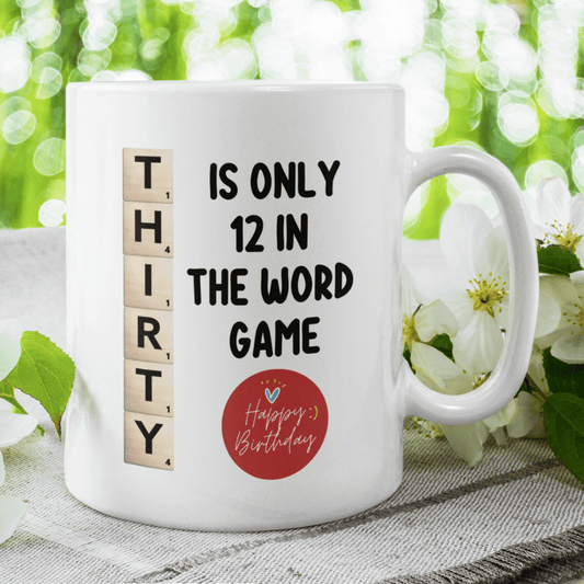 Birthday Gift, Custom 30th Birthday Mug: Thirty Is Only 12 In The Word Game