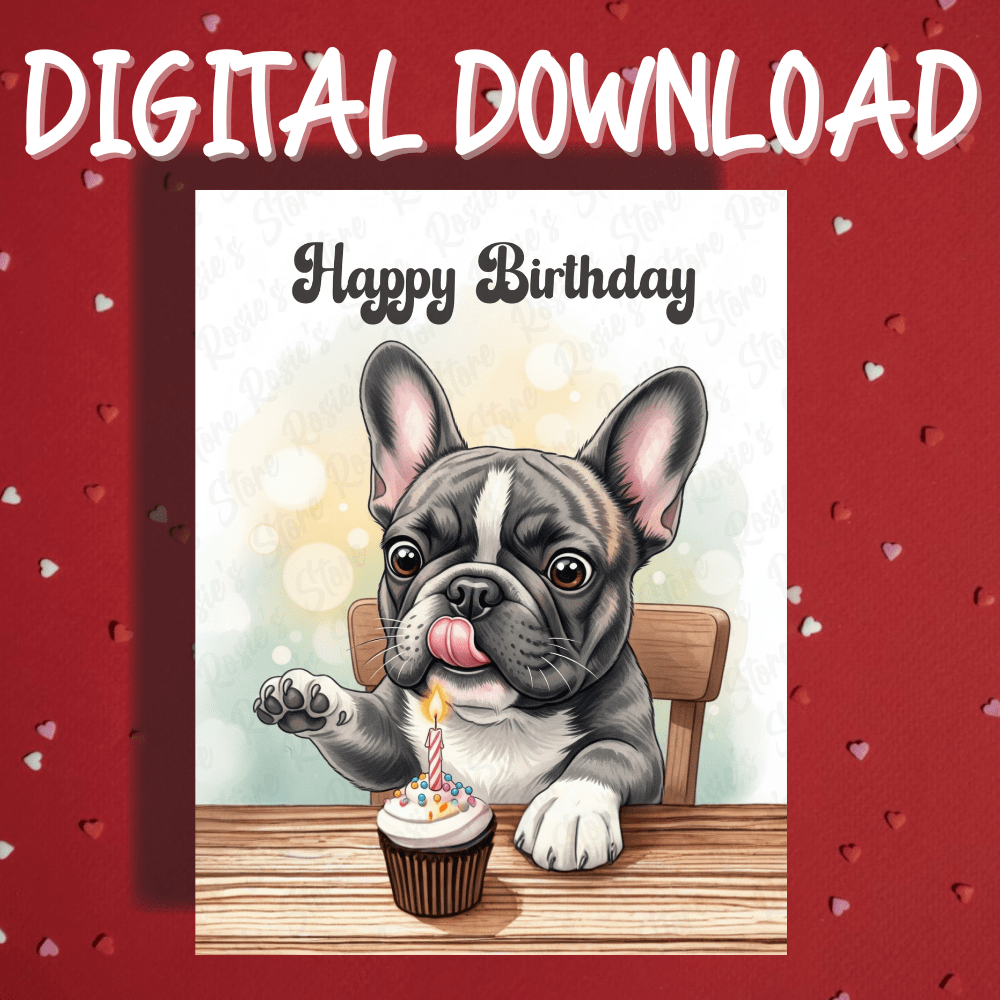 Send snorts of delight and birthday wishes with our charming "Happy Birthday" card, featuring an adorable watercolor illustration of a lovable French Bulldog with a festive birthday cupcake! 🎂🐾 This unique illustrated card is the perfect way to celebrate any French Bulldog dog pet lover, dog dad, or dog mom.