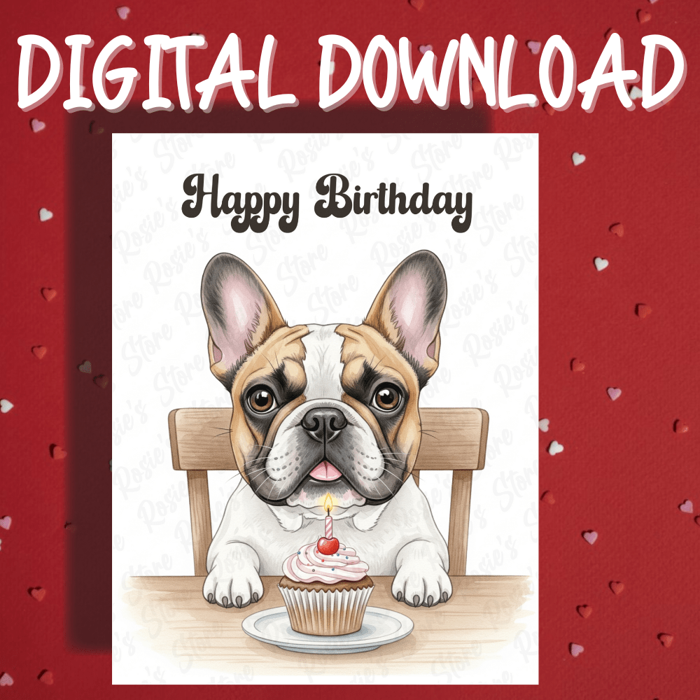 Send snorts of delight and birthday wishes with our charming "Happy Birthday" card, featuring an adorable watercolor illustration of a lovable French Bulldog with a festive birthday cupcake! 🎂🐾 This unique illustrated card is the perfect way to celebrate any French Bulldog dog pet lover, dog dad, or dog mom.