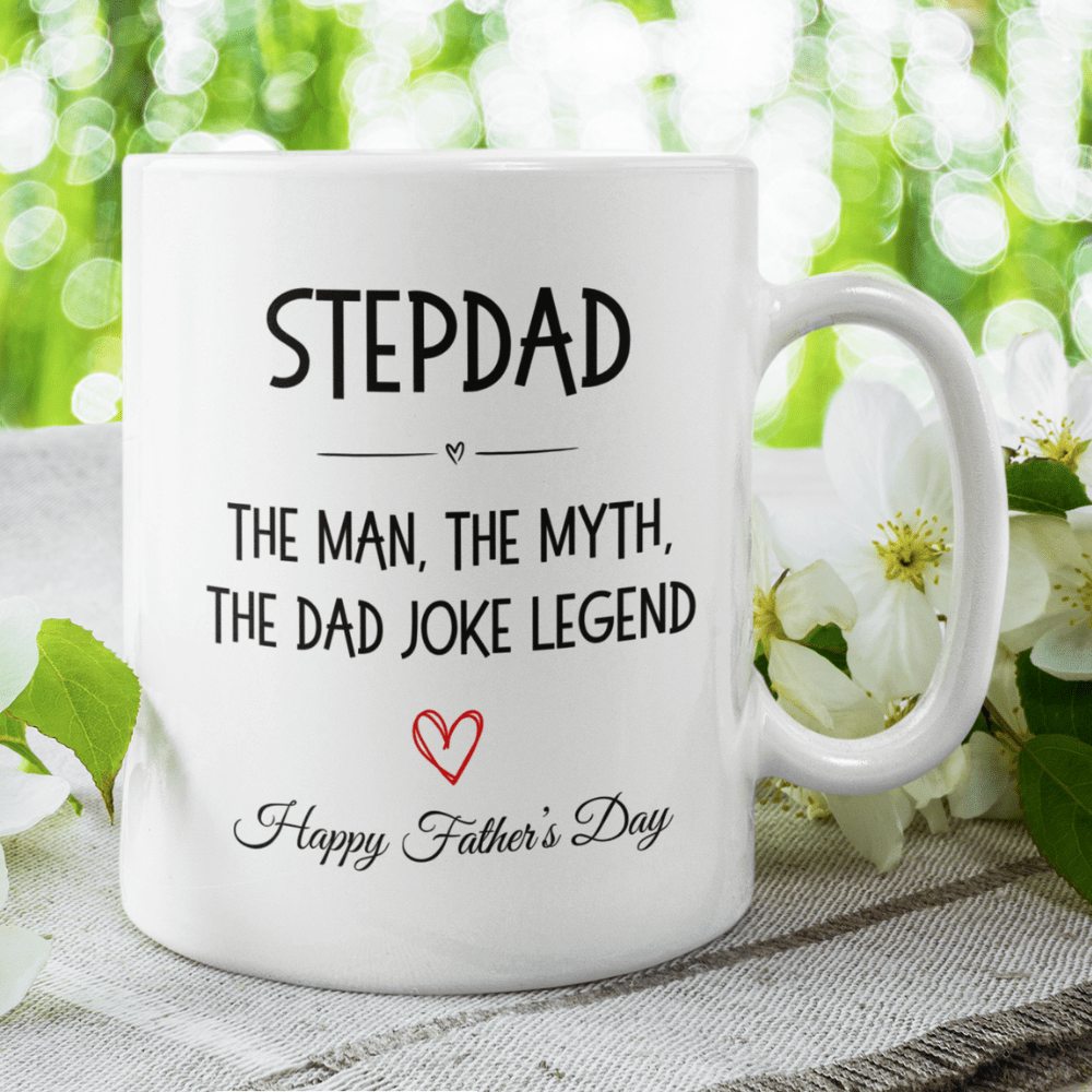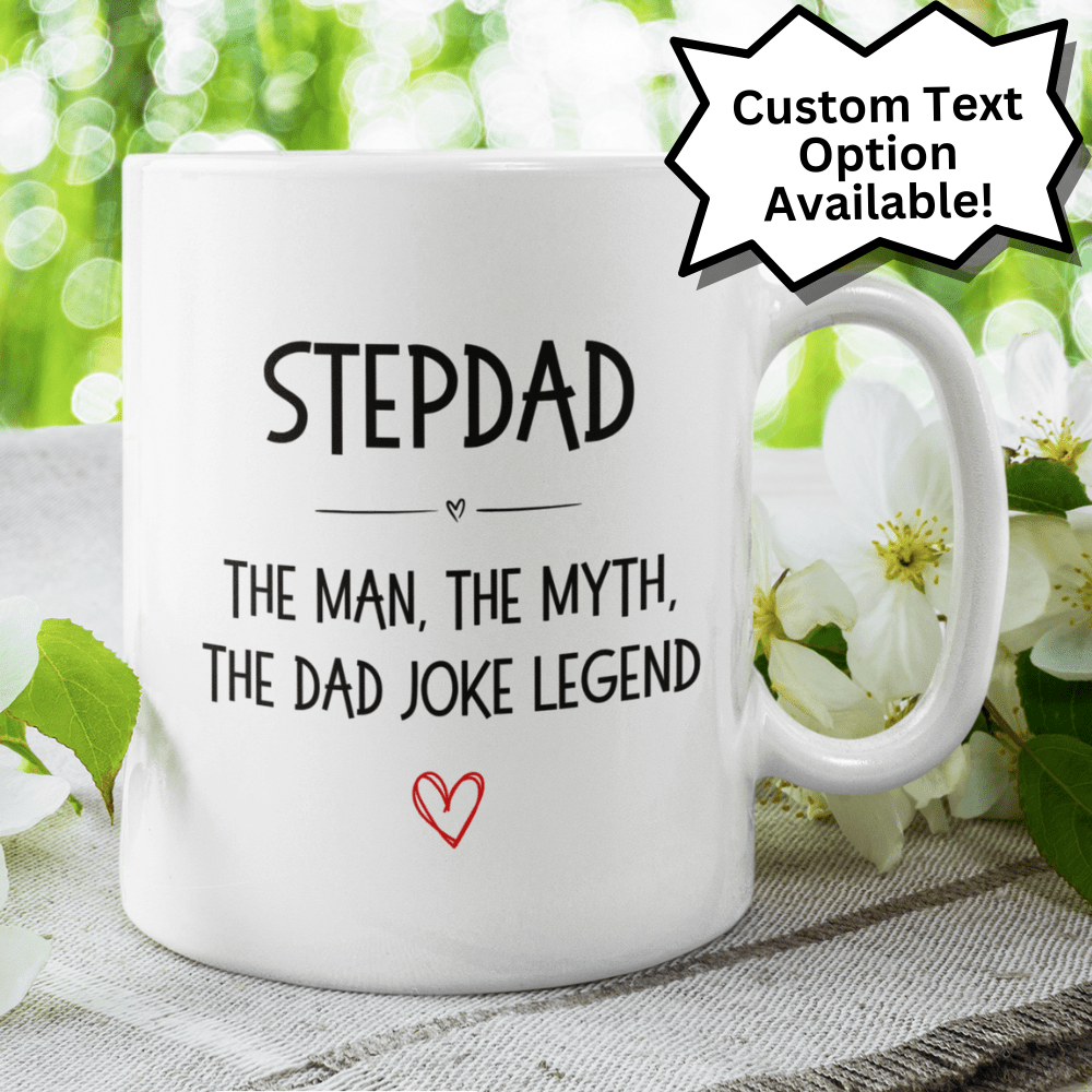 - The mug features a playful tribute to your stepdad's legendary status in the realm of dad jokes, celebrating him as an integral and cherished part of your blended family.