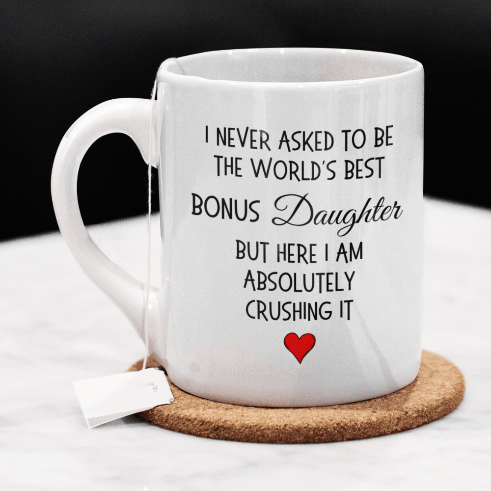- This mug is perfect for any bonus daughter who enjoys a good laugh and loves to be reminded of her important place in your life.