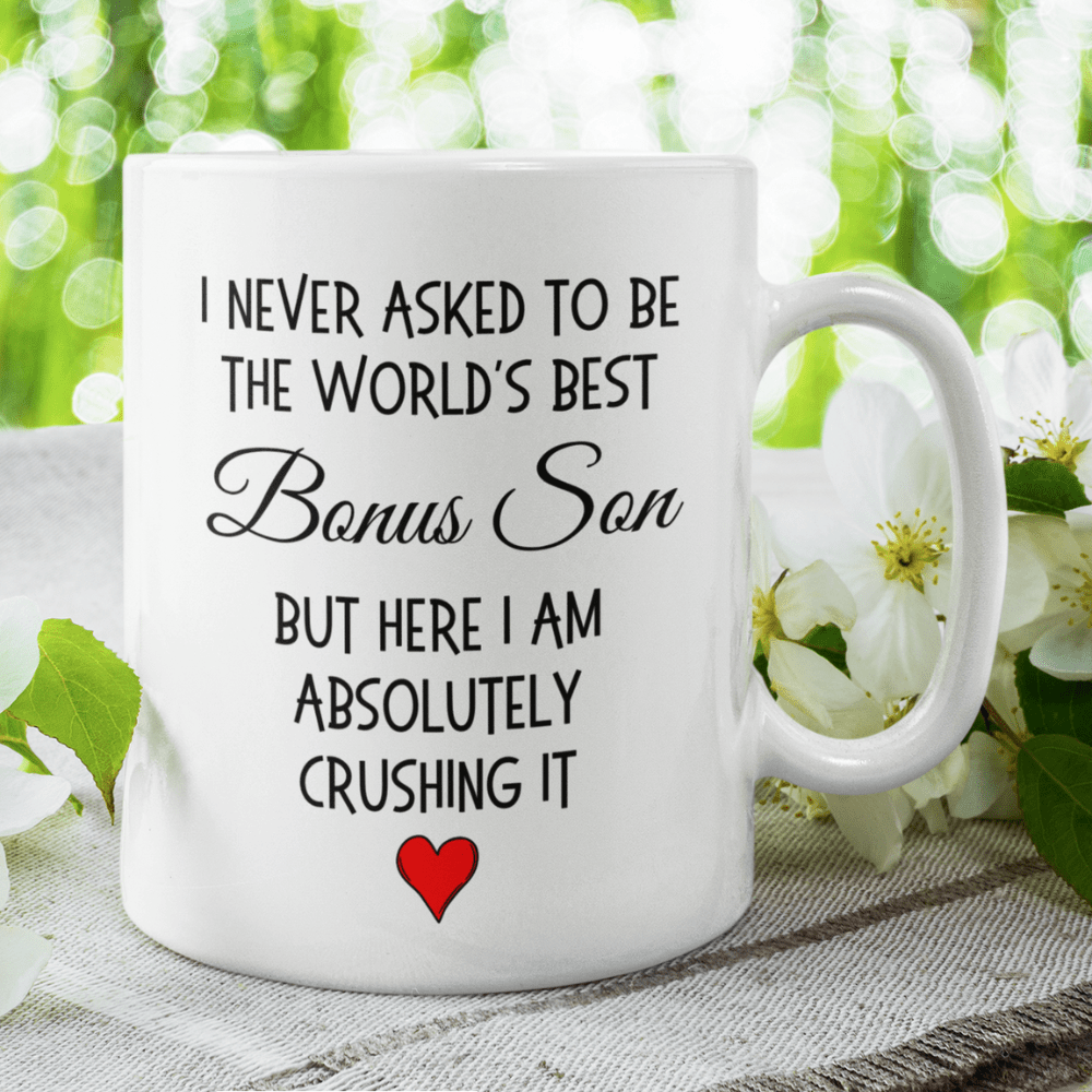 With the "I never asked to be the world's best bonus son but here I am absolutely crushing of it" coffee mug, every sip he takes will be filled with warmth and a reminder of how much he's loved and admired. It’s the perfect way to add a splash of humor to his day and reinforce his value in your family.