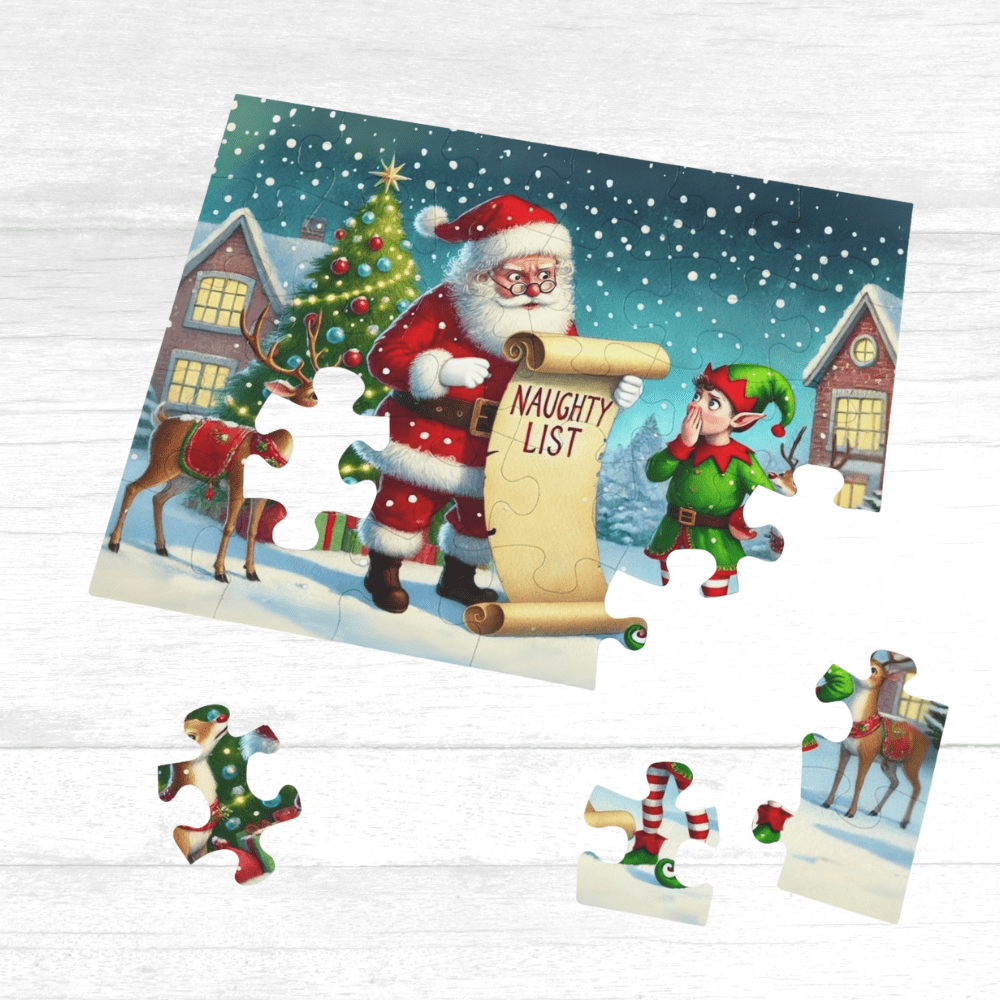 🎄✨ Double-Sided Christmas Puzzle – Naughty List Warning from Santa Claus! 🎅📝