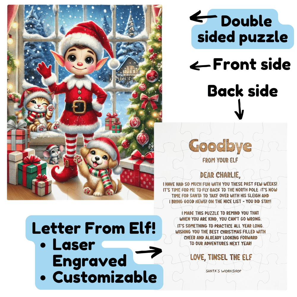 Christmas Gift, Personalized Elf Letter Double-Sided Jigsaw Puzzle: Goodbye or Hello From Your Elf (Elves)