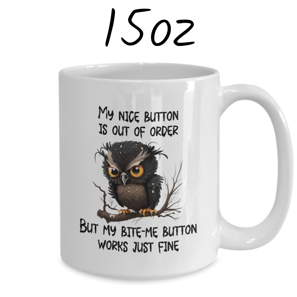 Owl Funny Coffee Mug: My Nice Button Is Out Of Order...