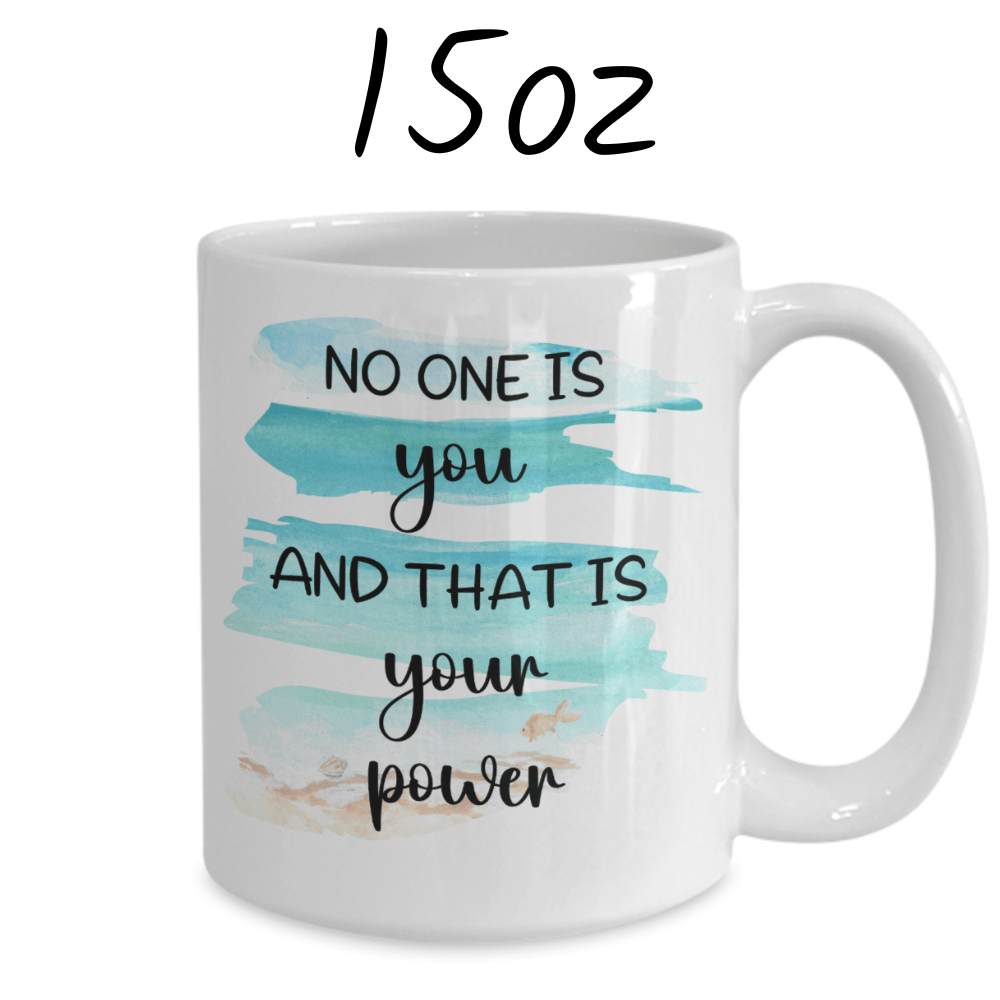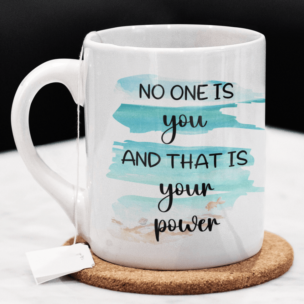 💖 Encouraging Affirmation Featuring the inspiring quote "No one is you and that is your power" this mug serves as a daily reminder to embrace individuality and celebrate one's unique strengths and qualities.