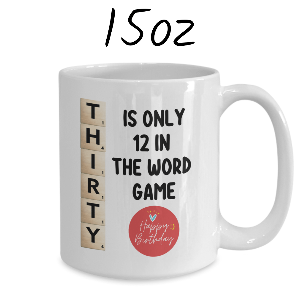 Birthday Gift, Custom 30th Birthday Mug: Thirty Is Only 12 In The Word Game