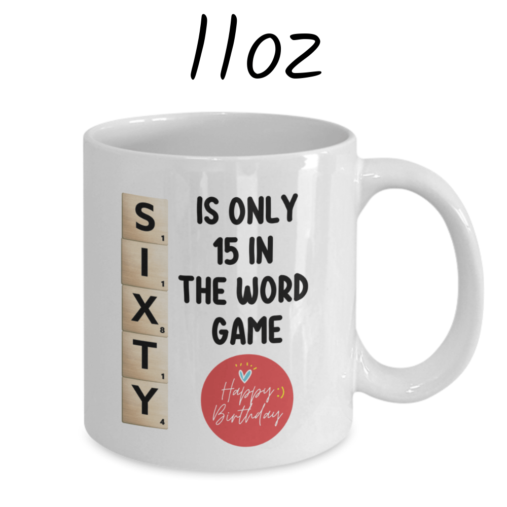 Birthday Gift, Custom 60th Birthday Mug: Sixty Is Only 15 In The Word Game