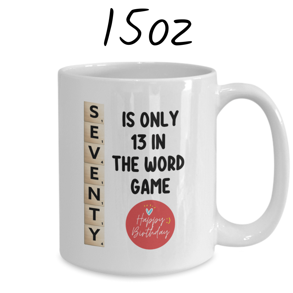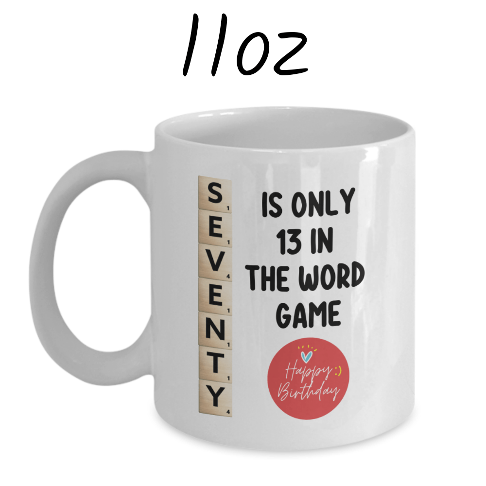 For Her or Him: Celebrate the women or men in your life with a birthday gift that resonates with wit and warmth. The "Seventy is Only 13 in the Word Game" mug is designed to delight and honor the journey of reaching 70.