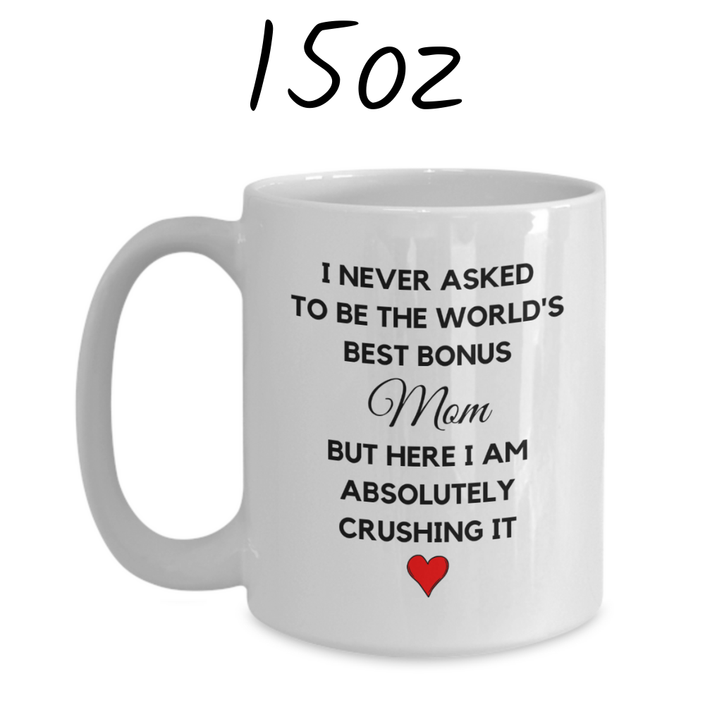 Your bonus mom is extraordinary, and it's time to show her just how much you appreciate her exceptional role in your life. Our funny ceramic coffee mug is the perfect way to do it, and it's available in two fantastic options: