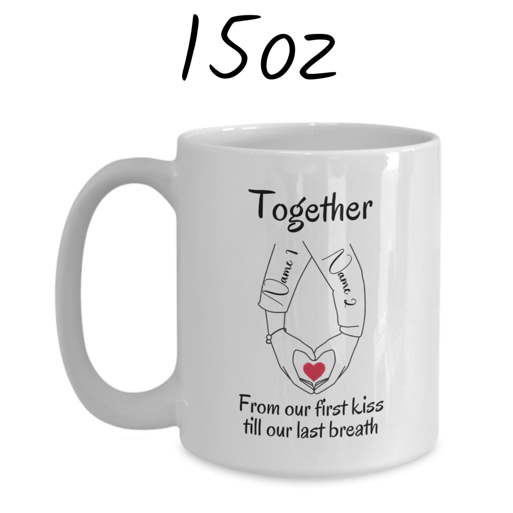 Couple Gift, Custom Names Coffee Mug: Together From Our First Kiss...