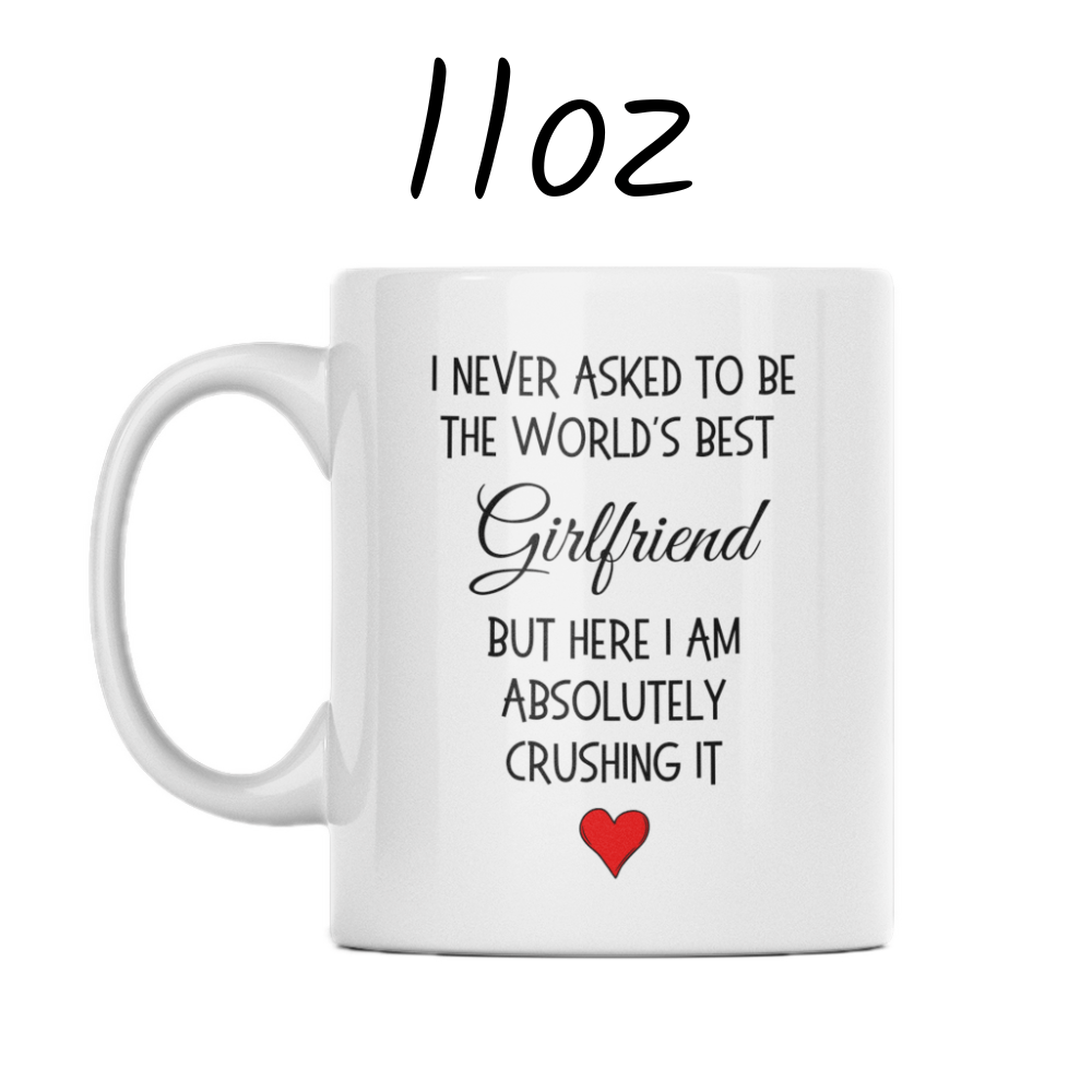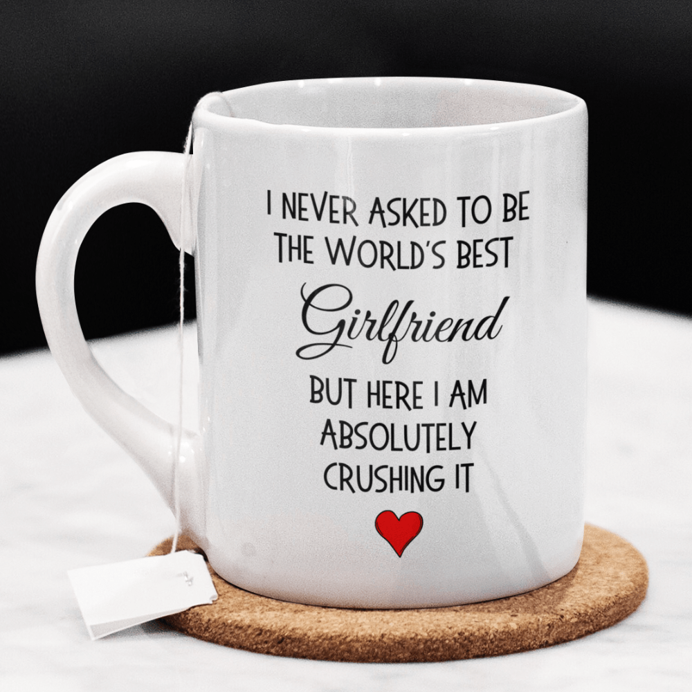 With our "I never asked to be the world's best girlfriend but here I am absolutely crushing it." coffee mug, show her how much you admire her fun and fantastic ways. It’s the ultimate way to add a little humor and a lot of love to her day, every day!