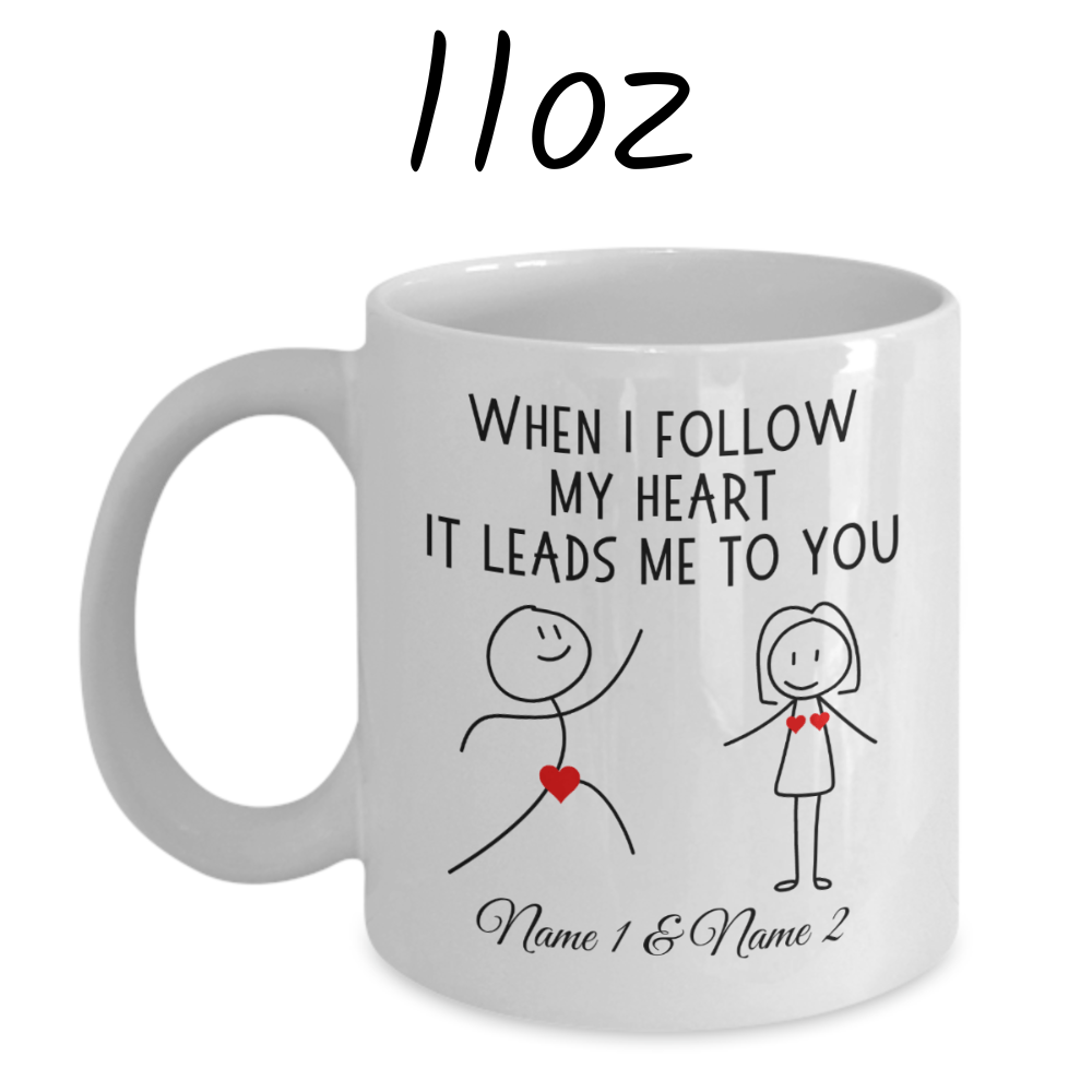 Couple Gift, Custom Names Coffee Mug: When I Follow My Heart It Leads Me To You