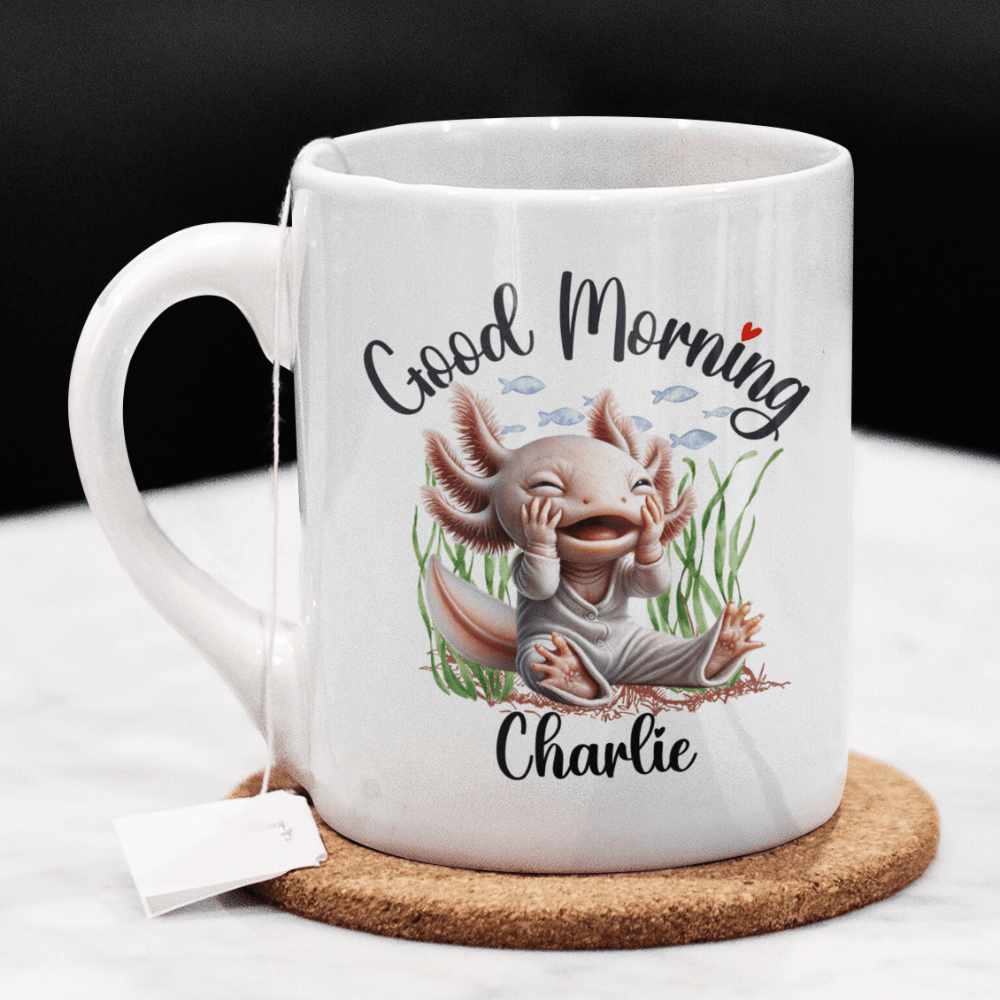 - Personalize your morning experience with your name or a loved one's name under the axolotl, creating a truly unique and thoughtful gift.