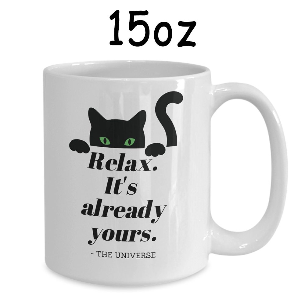 Cat, Motivational Gift, Coffee Mug: Relax. It's Already Yours. - The Universe