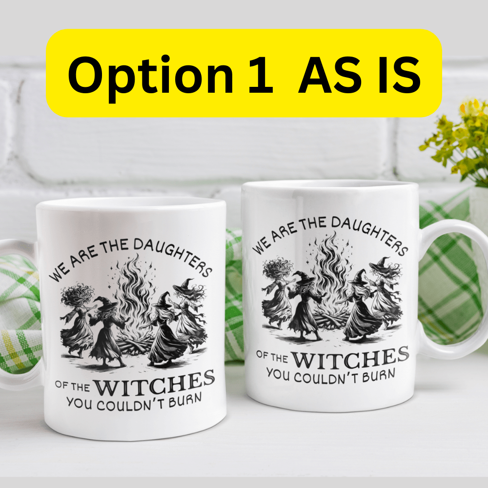 - Option 1: Revel in the captivating design that adorns both sides of the mug, celebrating the unyielding spirit of witchy ancestors.