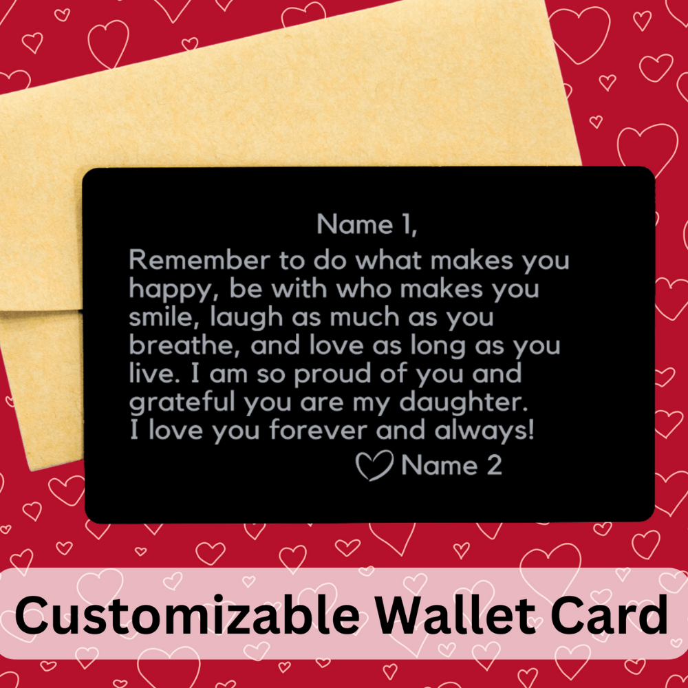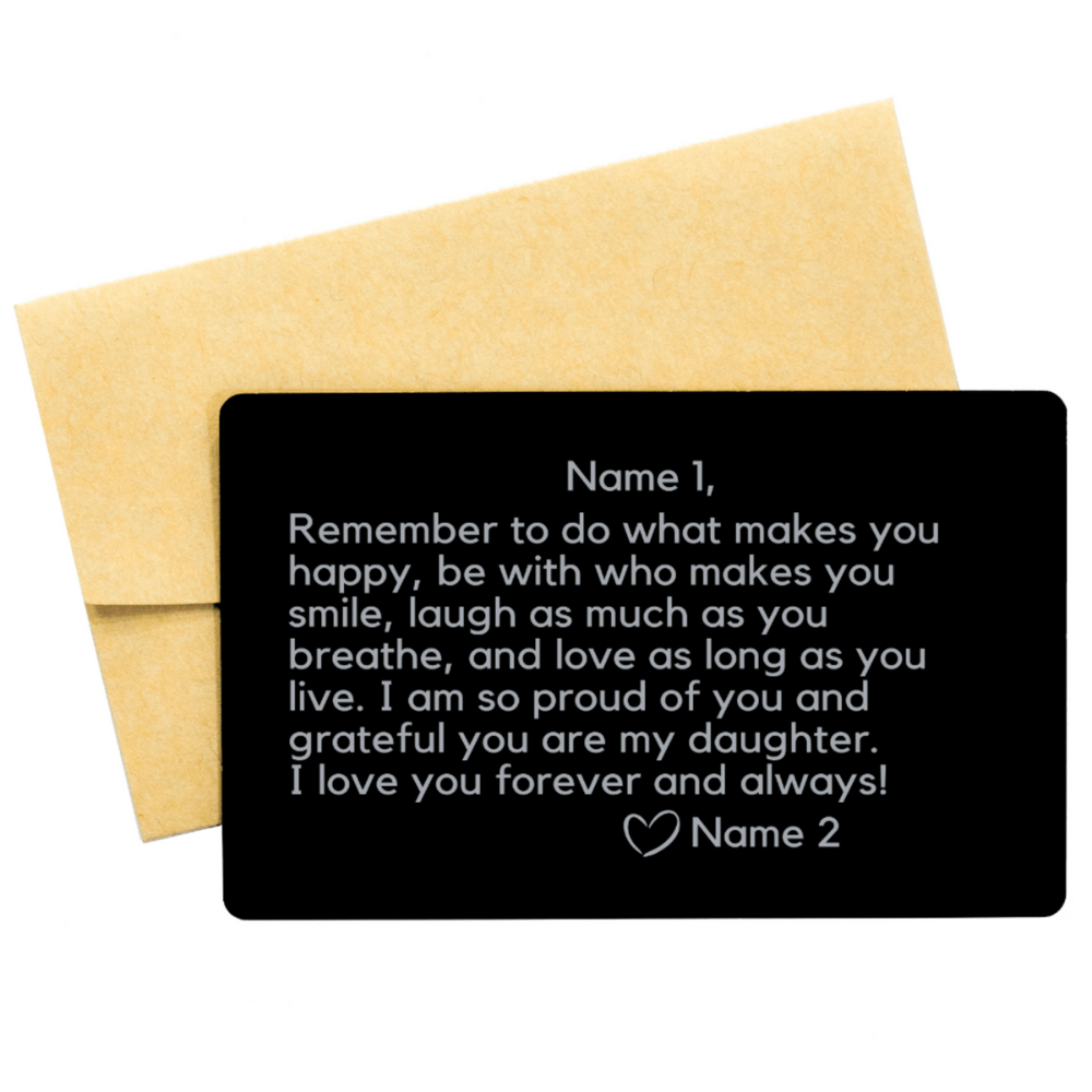 Whether it's a birthday, graduation, or any occasion that calls for a heartfelt gesture, our Engraved Wallet Insert Card for her is an exceptional choice. Express your love, admiration, and pride with this beautiful, personalized memento that will accompany her on her journey for years to come.