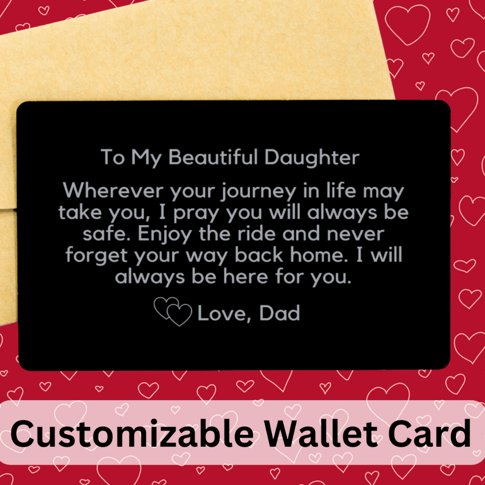 Presenting our Engraved Wallet Insert Card, a touching token of love and guidance for your cherished daughter. This exquisitely designed card carries a heartfelt message that will resonate with her wherever her life's journey may lead.