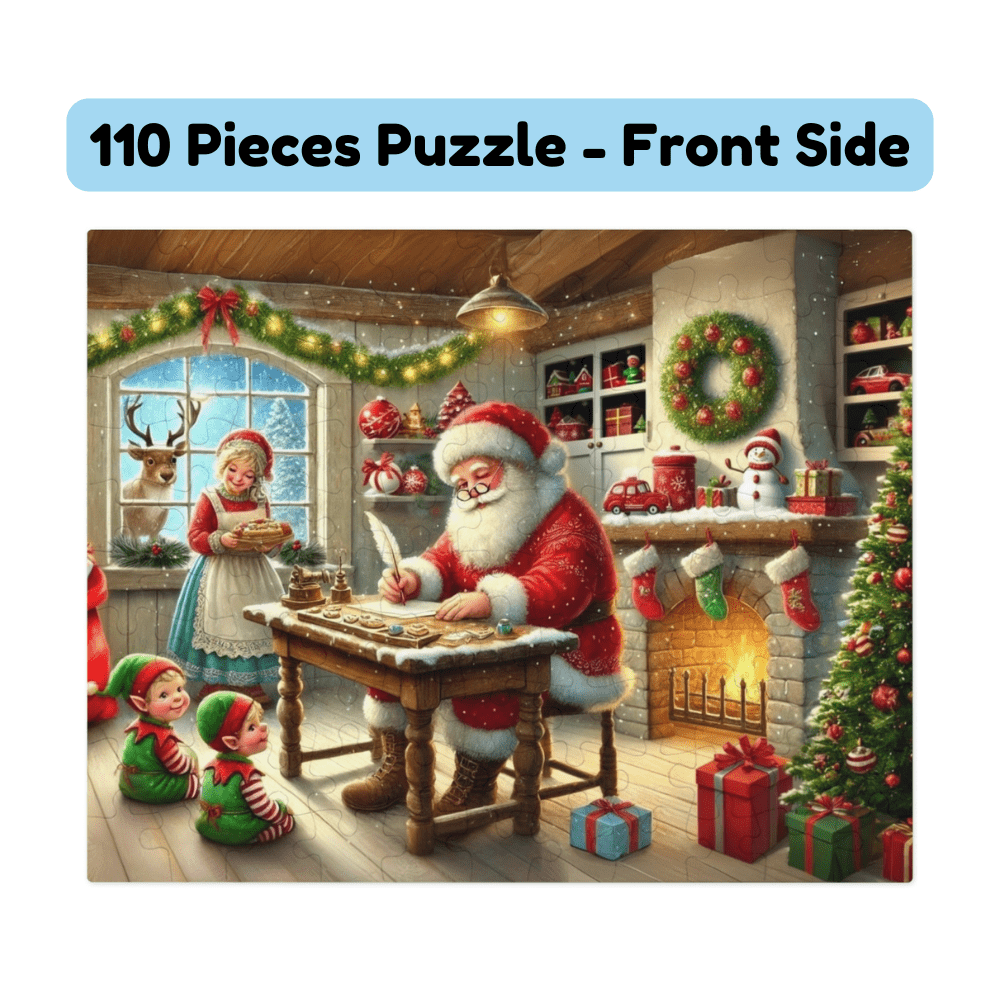 On one side, your child will love assembling an adorable illustration of Santa Claus. Once the Christmas puzzle is complete, the holiday magic continues! They can flip it over to reveal a beautiful, laser-engraved letter from Santa. You get to choose the message: a rewarding Santa nice list certificate or a Santa naughty list!