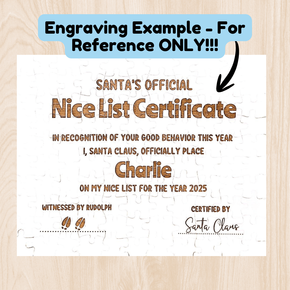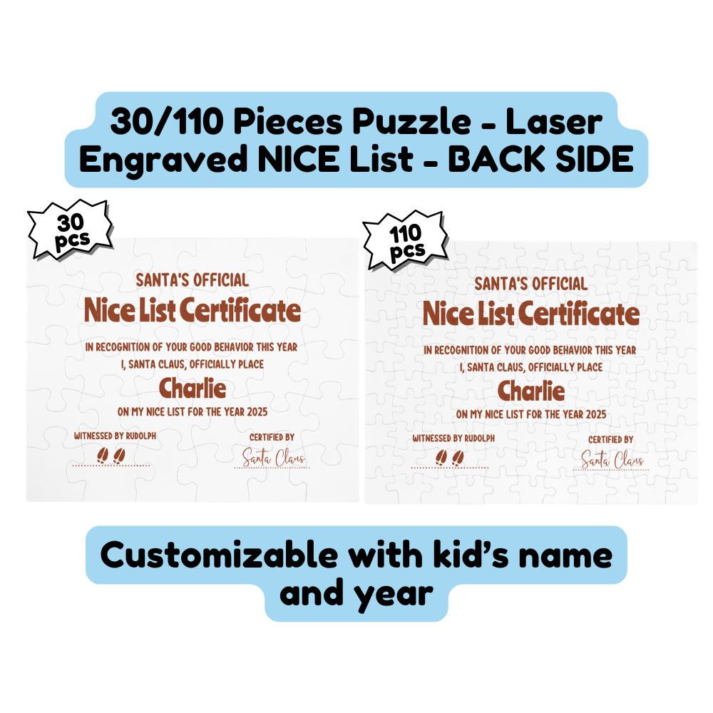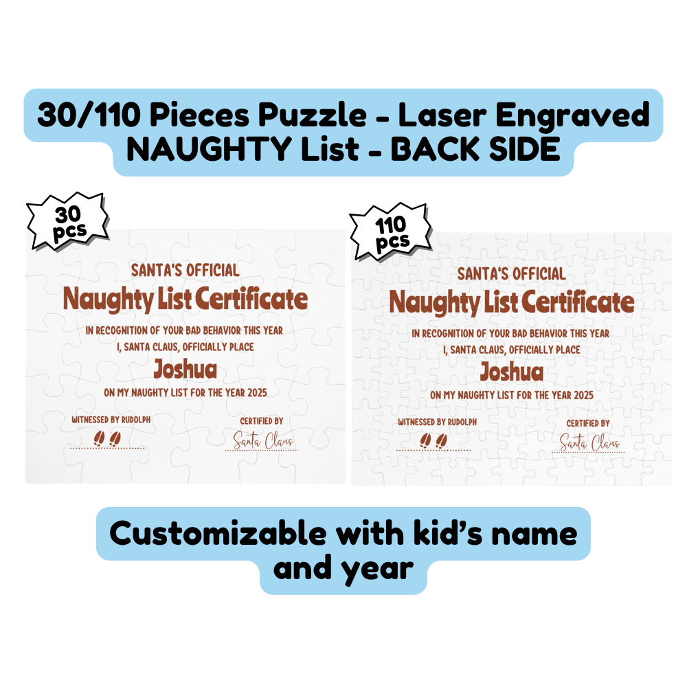 Christmas Gift, Double-sided Puzzle with Laser Engraved NICE or NAUGHTY List