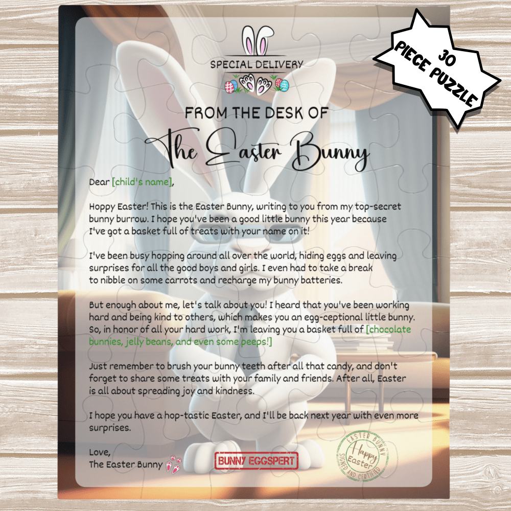 Easter Gift, Puzzle for Kids - 30 or 110 pieces, Personalized Letter from the Easter Bunny 004