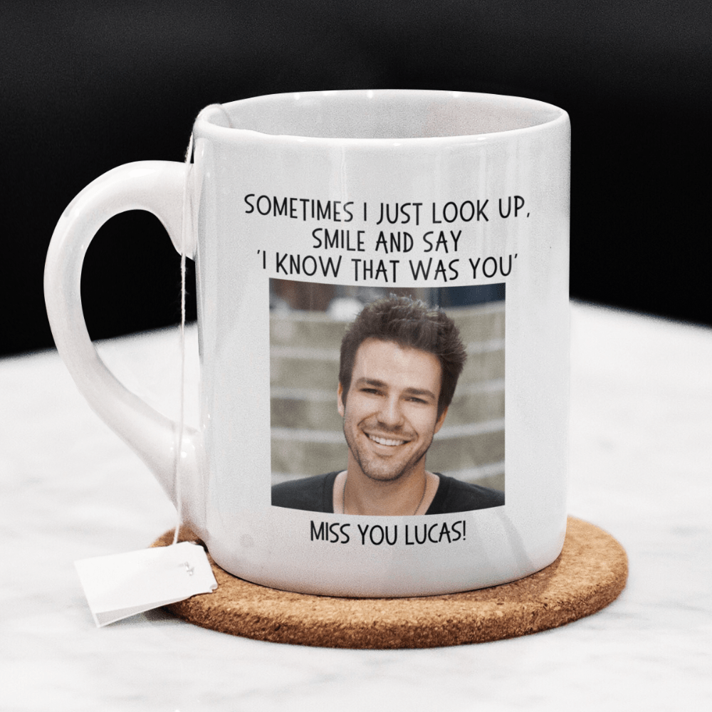 This memorial mug offers a heartfelt way to honor and remember your loved one. It can be personalized with a high-quality photo of your choosing and custom text under the photo. 📸
