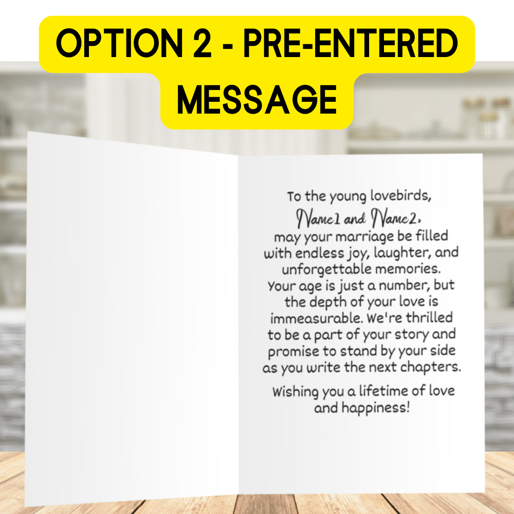 The front of the card is a canvas of love, ready for personalization with the names of the brides. It's a thoughtful and unique touch that adds a personal dimension to your wedding wishes.