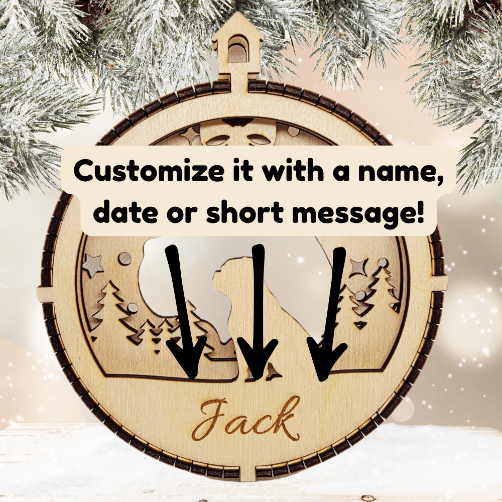 Crafted with a three-layer structure separated by a smooth wooden band, this ornament creates a stunning illusion of depth and three-dimensional detail that makes it stand out beautifully on your Christmas tree.