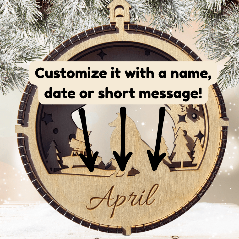 With its three-layer construction, separated by a fine wooden band, this ornament creates an eye-catching illusion of depth and beautiful three-dimensional charm that stands out on any Christmas tree.