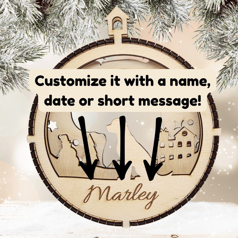 Add your own custom text (up to 35 characters) — for example: Rosie’s 1st Christmas 2025, Happy Holidays 2025, or Best Lab Ever! — and make your ornament a truly custom personalized gift to treasure for years.