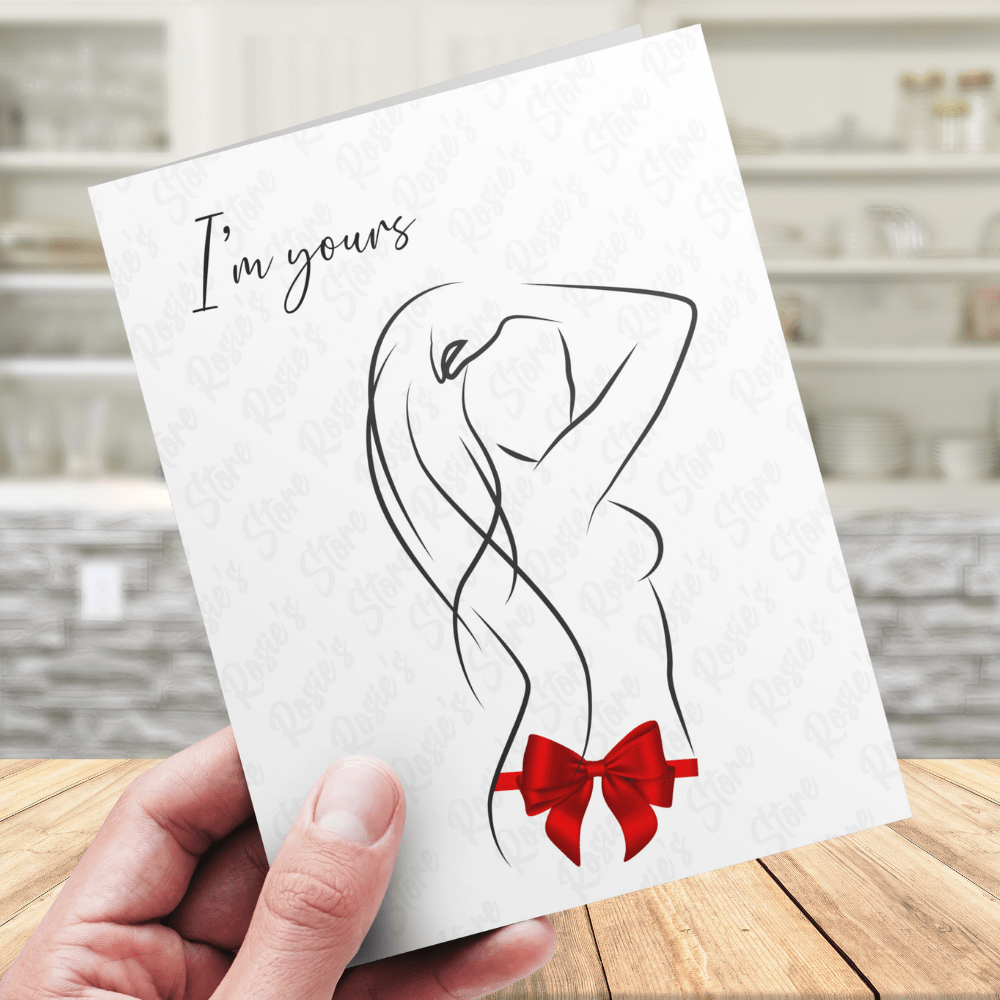 Introducing our sultry and captivating greeting card: "I'm yours" featuring a sexy silhouette of a woman. This card comes in two options: Option 1 AS IS, and Option 2 can be customized with a short text of your choice. Measuring 4.25" x 5.5", this card is crafted from high-quality, ACID-FREE, thick, and durable paper - proudly MADE IN USA! A white envelope is included with each card for added convenience.