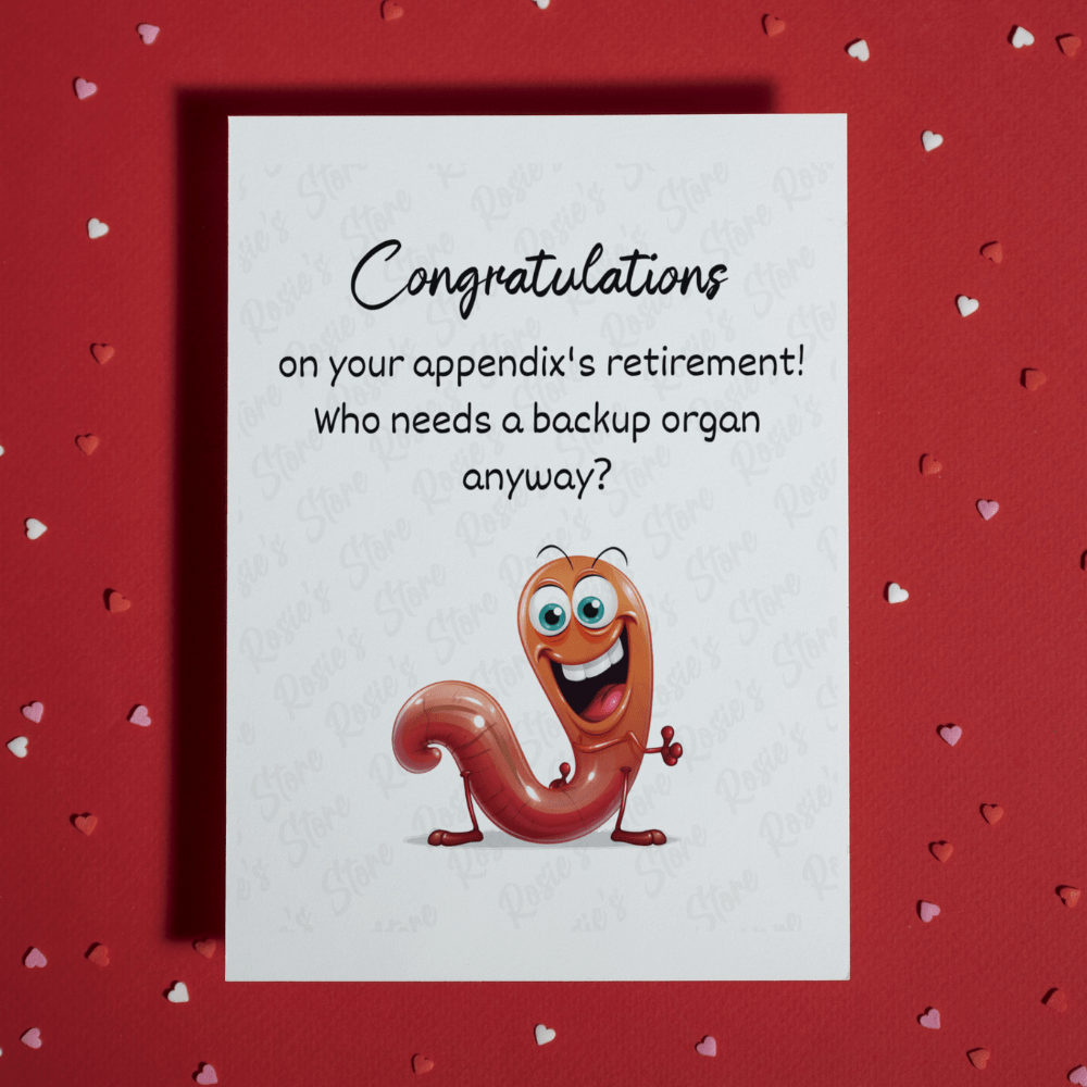 Made with premium materials and a touch of whimsy, our greeting card is the perfect way to celebrate the retirement of an appendix. Order yours today and let the laughter begin!