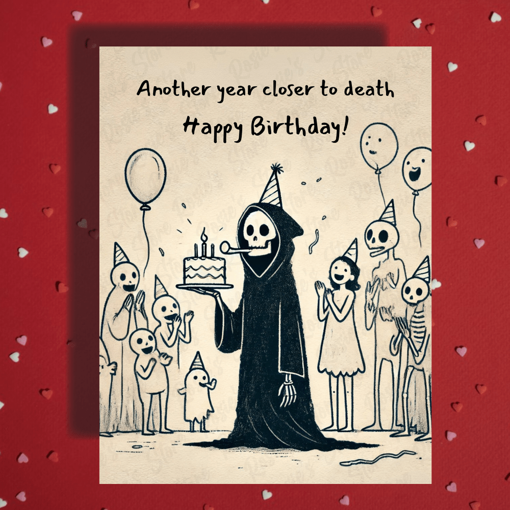 💀🎉 Another Year Closer to Death – Dark Humor Birthday Card 🎉💀