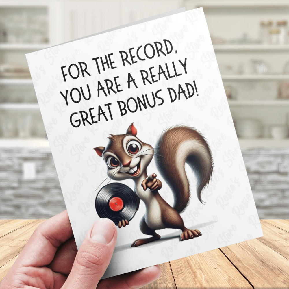 - Front Text: "For the record, you are a really great bonus dad!"