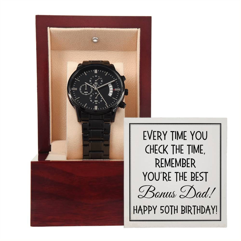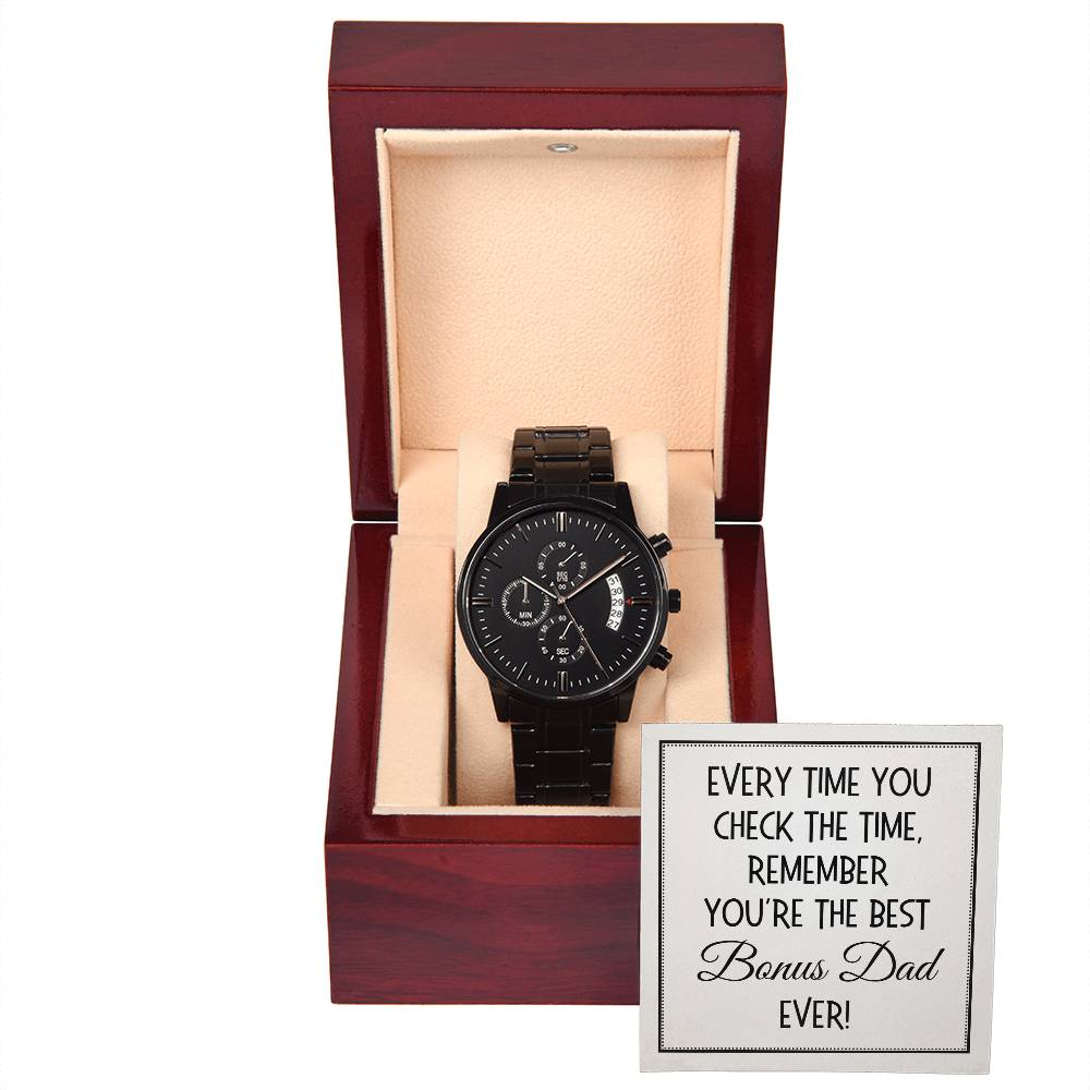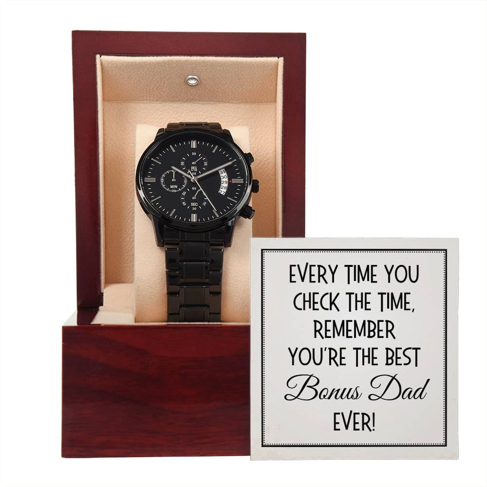 Perfect for any occasion, this watch is a fantastic gift for bonus dads, stepdads, or stepfathers. It's a wonderful choice from a bonus son or bonus daughter, making it a custom personalized gift that he'll treasure forever. ❤️