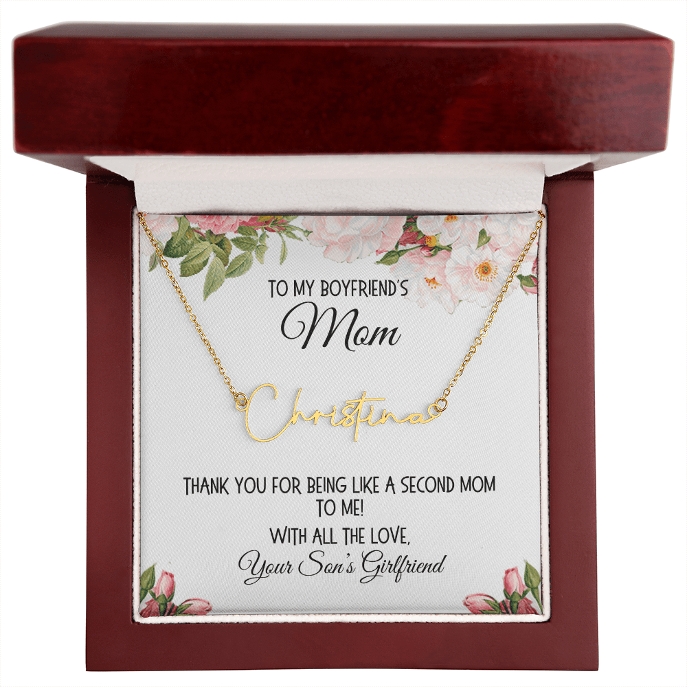 Our Personalized Signature Name Necklace is a meaningful way to show appreciation to your boyfriend’s mom! Makes a great gift on Mother's Day, Birthday, Christmas, or just because...She will love it!