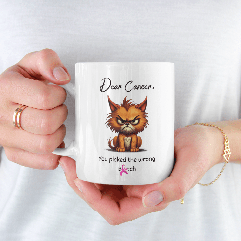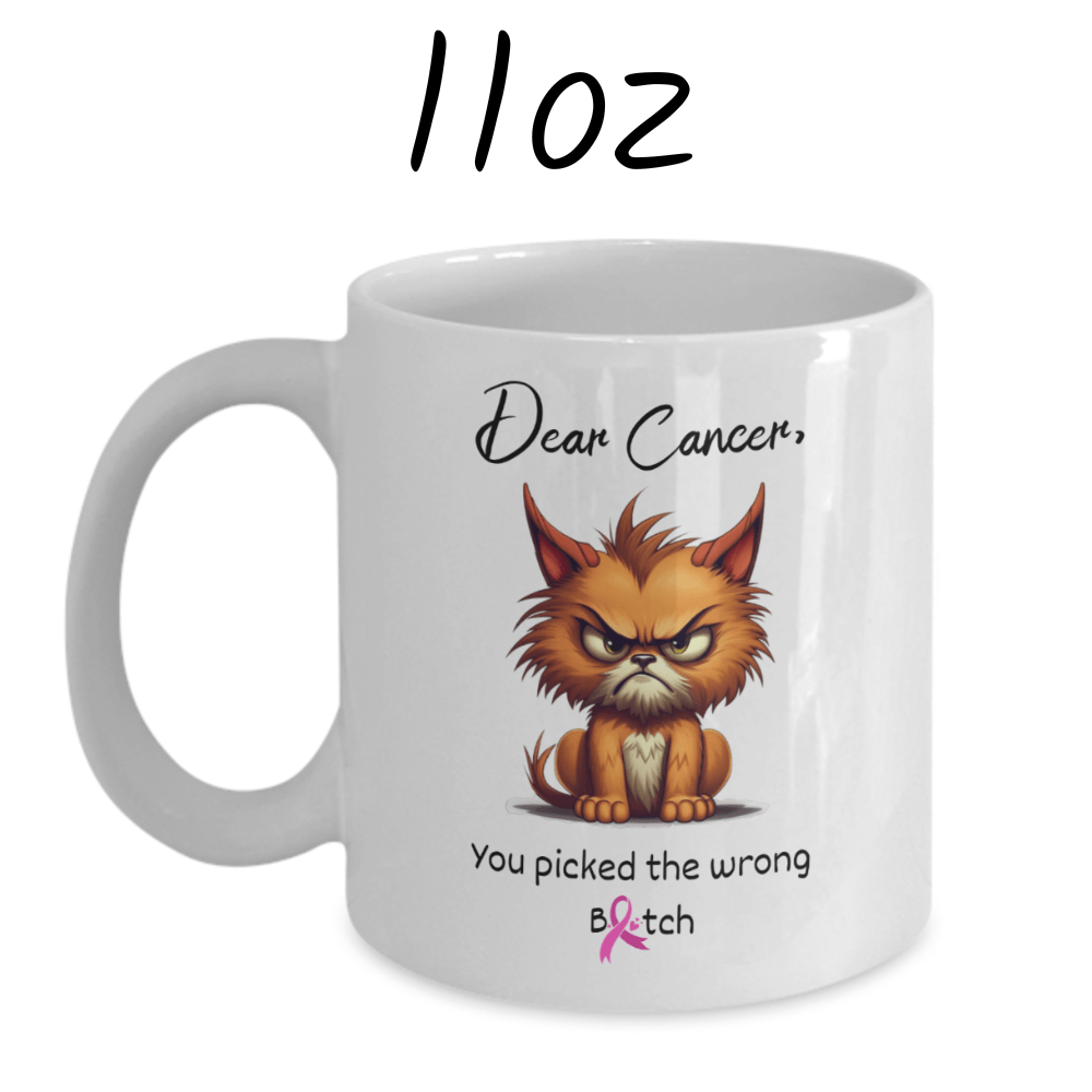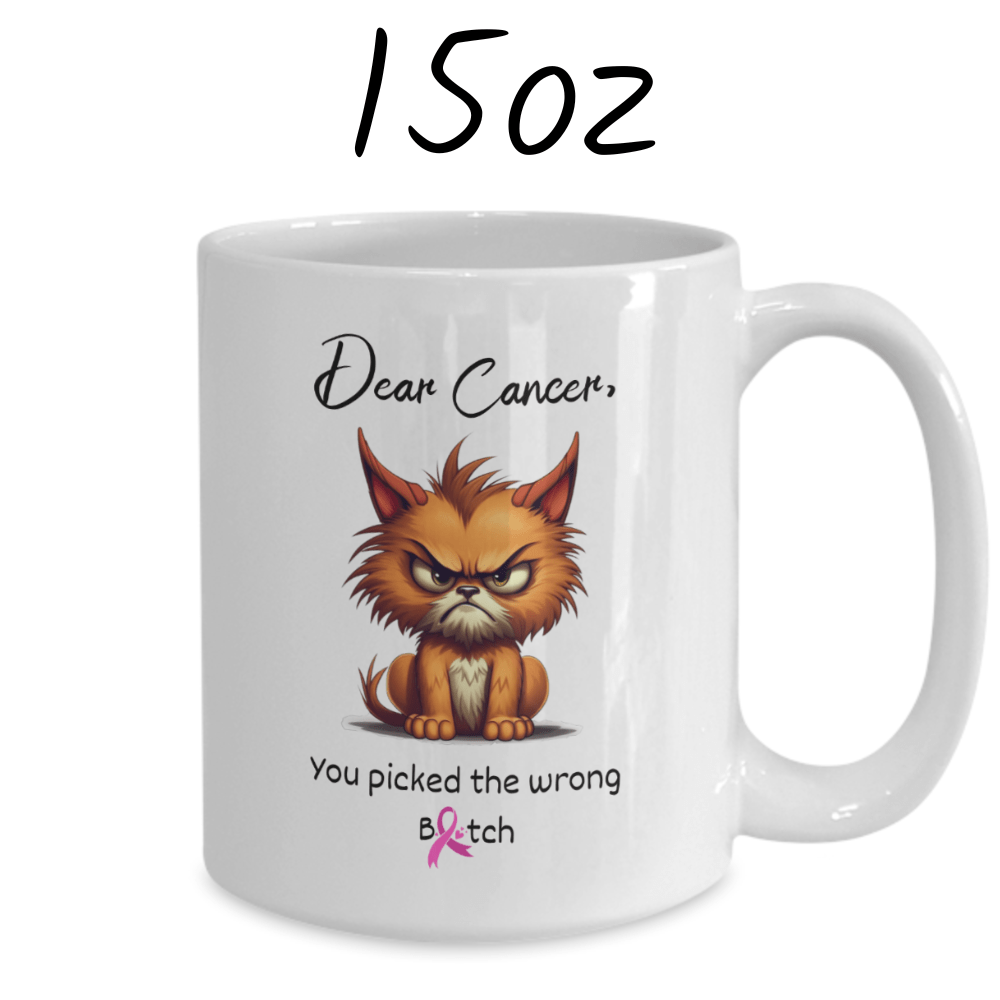 Emblazoned with the bold quote, "Dear Cancer, You picked the wrong bitch," this mug sends a clear message of resilience and determination. It's a reminder that cancer may have tried its best, but it underestimated the indomitable spirit of those it dared to challenge.