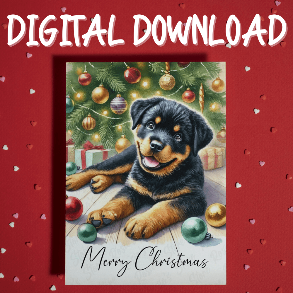 🎄 Celebrate the holidays with our charming digital download Christmas greeting card featuring a loyal Rottweiler! 🎄