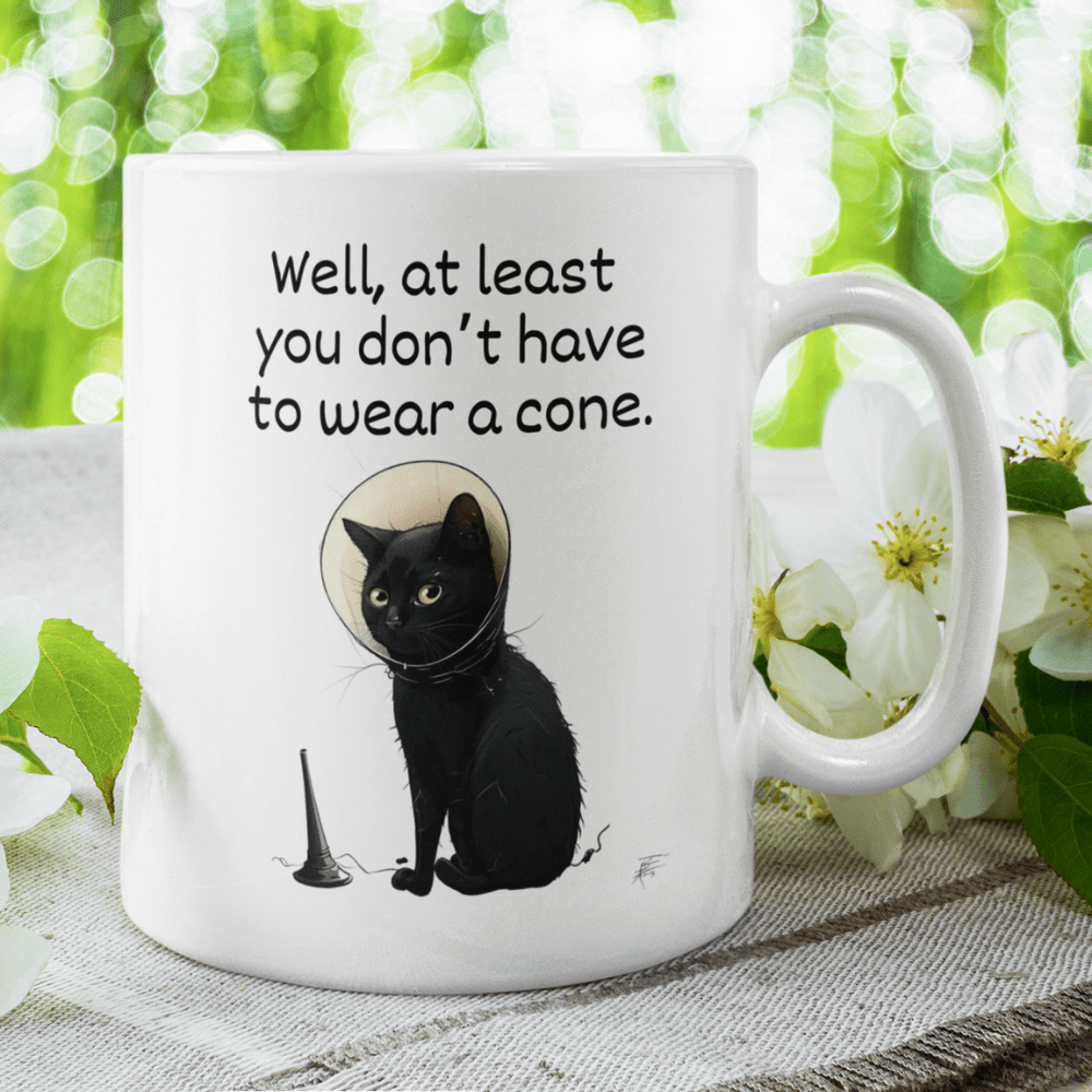 Get Well, Coffee Mug - Cat: Well, at least you don't have to wear a cone
