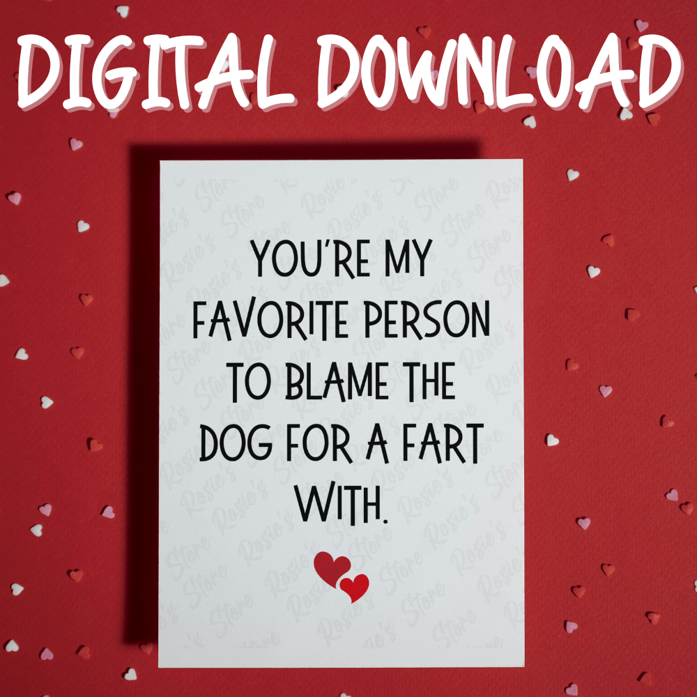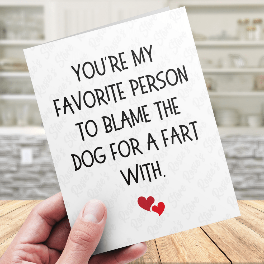 • Text on card: "You’re my favorite person to blame the dog for a fart with."