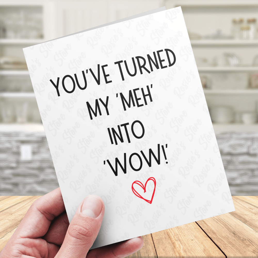 💖 Show your loved one how they've turned your life from 'meh' to 'wow' with this heartwarming and fun card. Download it today to celebrate your special bond and share your appreciation in a memorable way!
