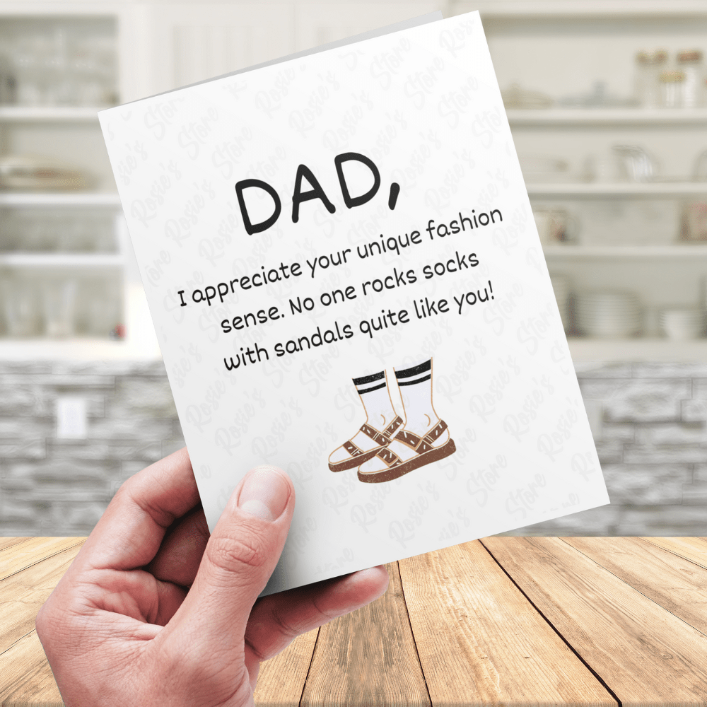 We all have that one fashion-forward dad who confidently rocks socks with sandals like no other. This card lovingly acknowledges his unique fashion sense and lets him know that his bold choices don't go unnoticed. It's a light-hearted and fun way to express your admiration for his fearless fashion spirit.