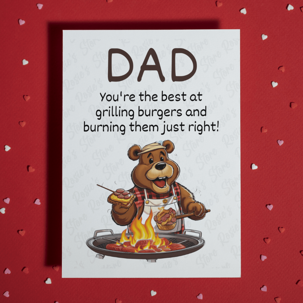 We all know that dads have a special talent for manning the grill, and this card playfully acknowledges their unique ability to create burgers with the perfect char. Let your dad know that his burger-burning skills are truly unmatched!