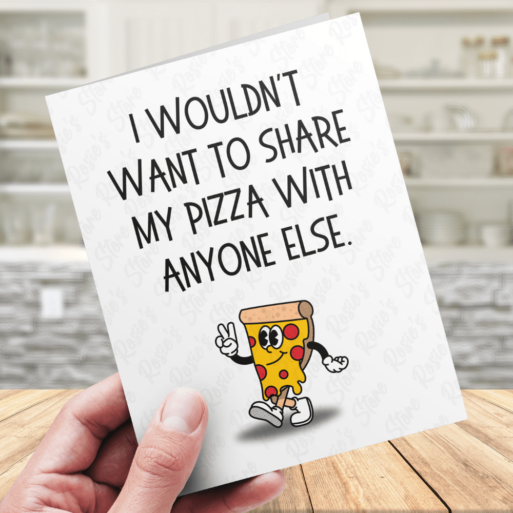 This card is ideal for sharing with your best friend, significant other, or anyone special in your life. Whether it's for a birthday, Christmas, Valentine's Day, or just to say "I love you," this funny card is perfect for pizza lovers and those who love a bit of humor.