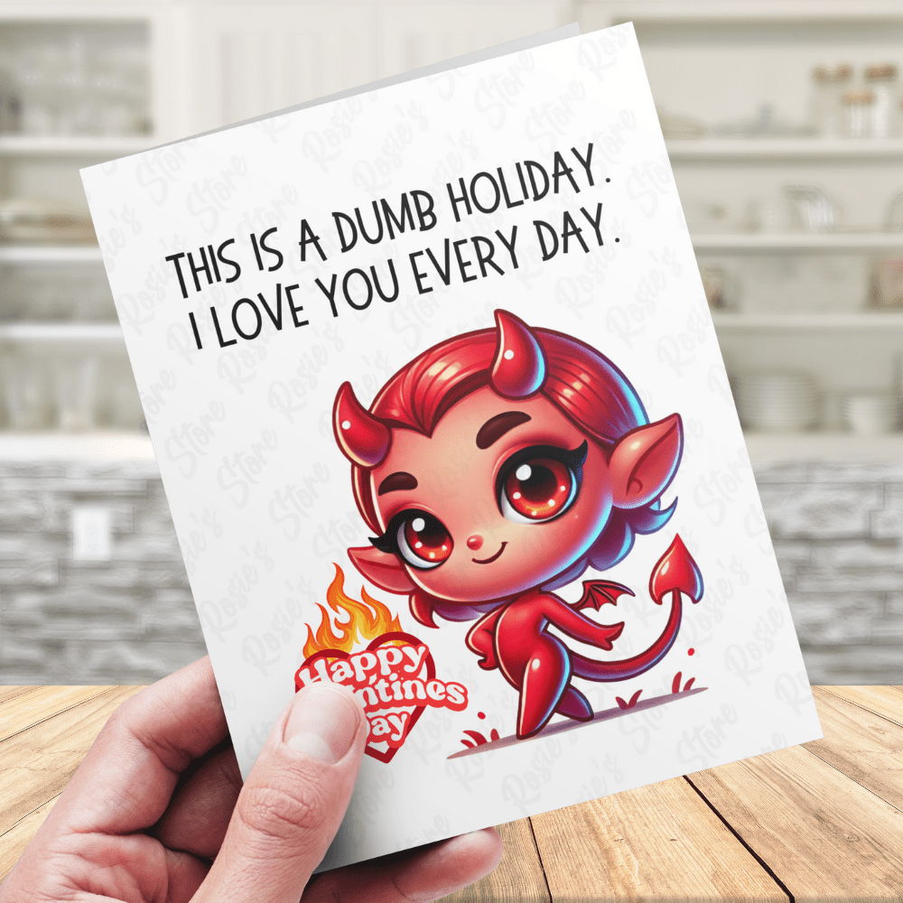 - Front Text: "This is a dumb holiday. I love you every day. Happy Valentine's Day"