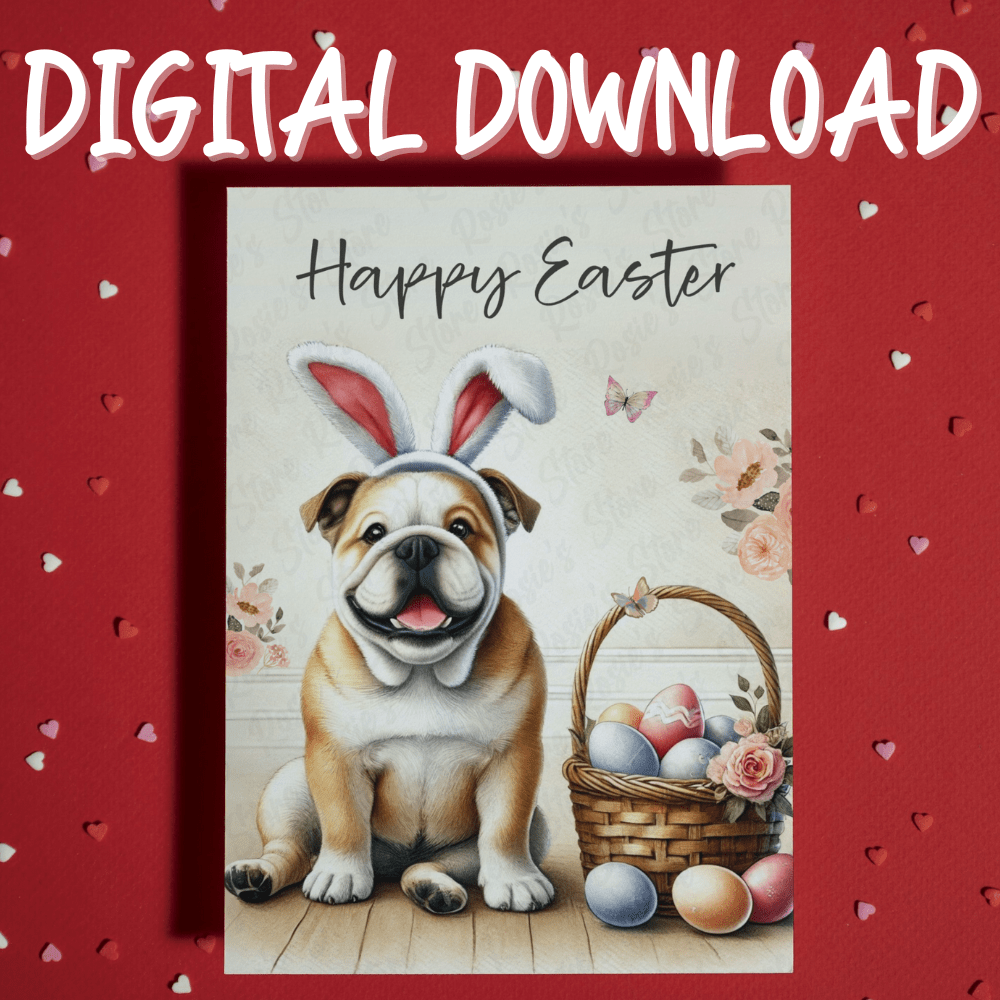 Easter Digital Greeting Card, Bulldog Dog: Happy Easter