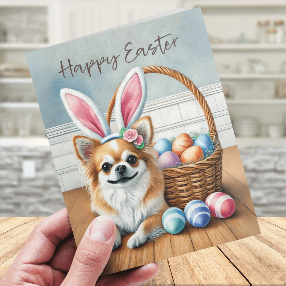 Download your printable card today and send Easter smiles with this adorable Chihuahua design! 🐾🐣💖