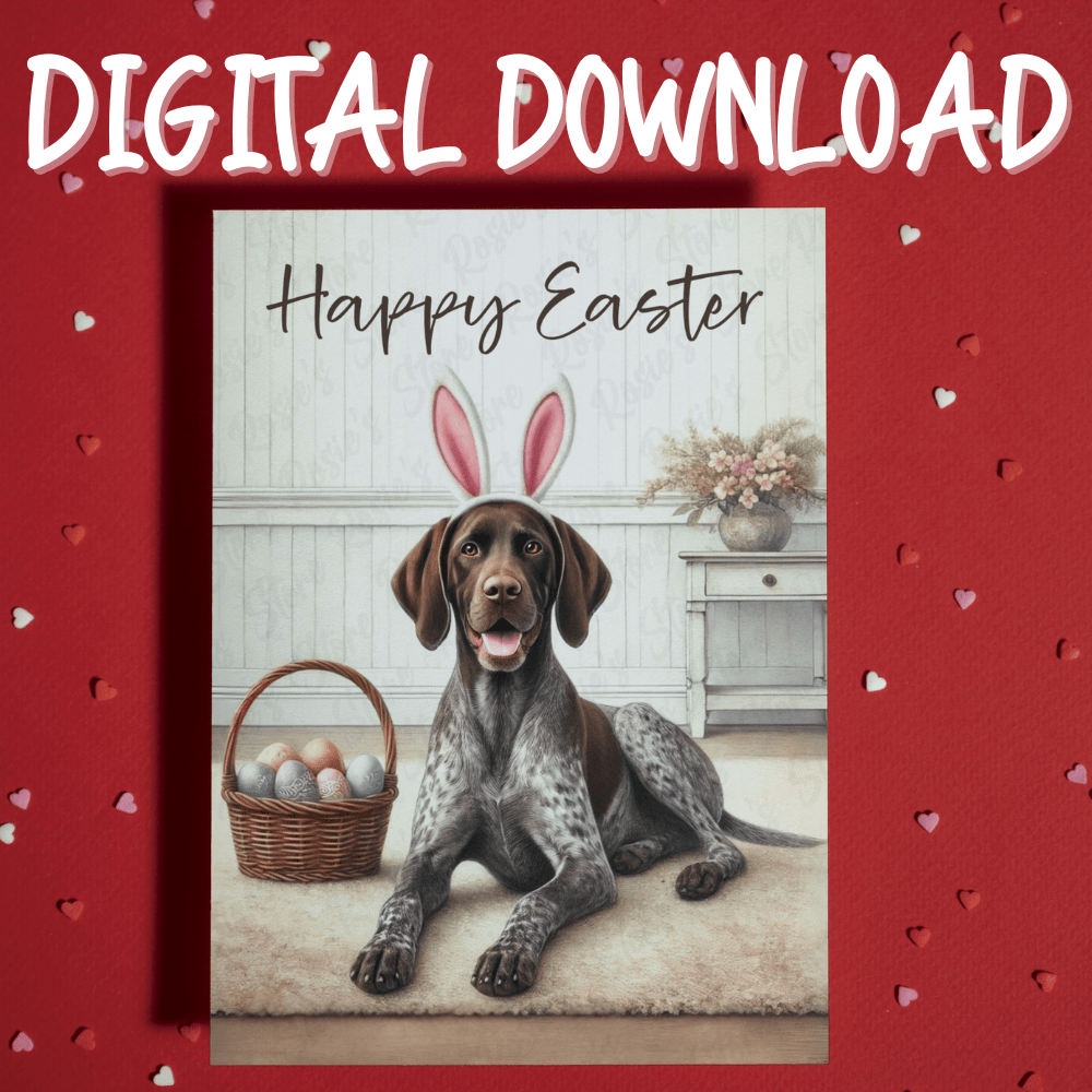 Easter Digital Greeting Card, German shorthaired pointer Dog: Happy Easter